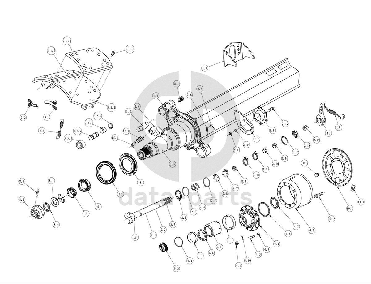Ось квадратная односкатная 12 тонн с манжетой 94651L.10.2400.001