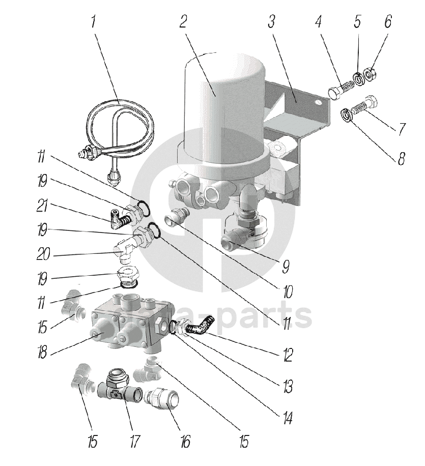 Установка влагомаслоотделителя и 4-х контурного защитного клапана УРАЛ-55571-1121-70