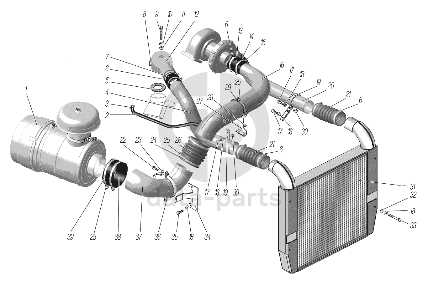 Система питания двигателя воздухом для автомобилей 4320-0000110-61,4320-0000111-61И03, 4320-0001112-61Р02, 5557-0001122-60, 55571-0001121-60Р02 УРАЛ-4320-61