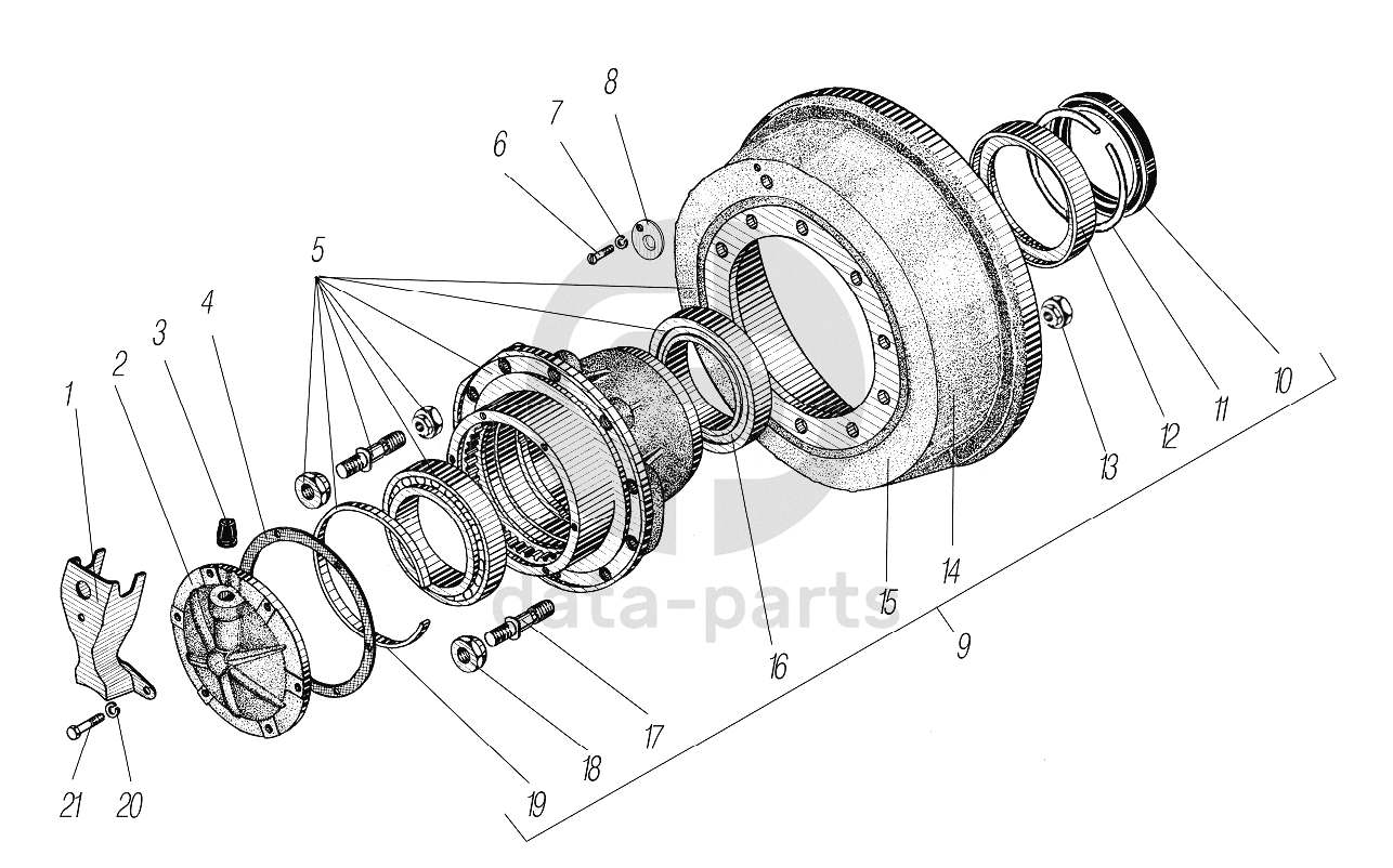 Ступица колеса и тормозной барабан среднего моста (без АБС)
