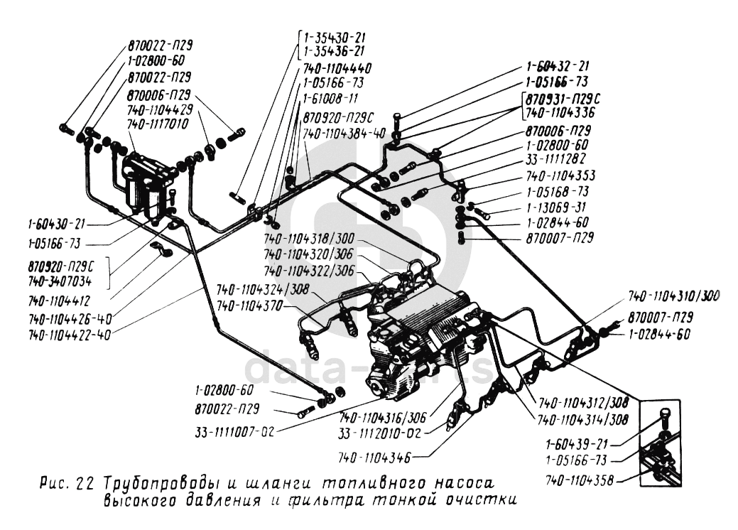 Трубопроводы и шланги топливного насоса высокого давления и фильтра тонкой очистки УРАЛ-43202