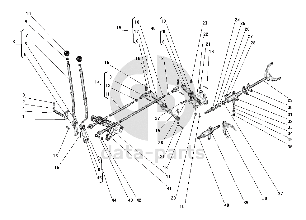 Вал рычагов управления раздаточной коробкой