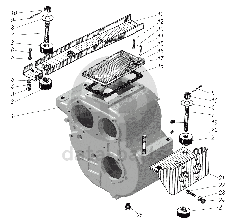 Картер и подвеска раздаточной коробки