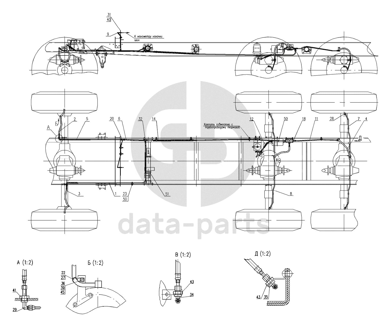 Система регулирования давления воздуха в шинах на автомобиль 4320-1151-59 УРАЛ-4320-0971-58
